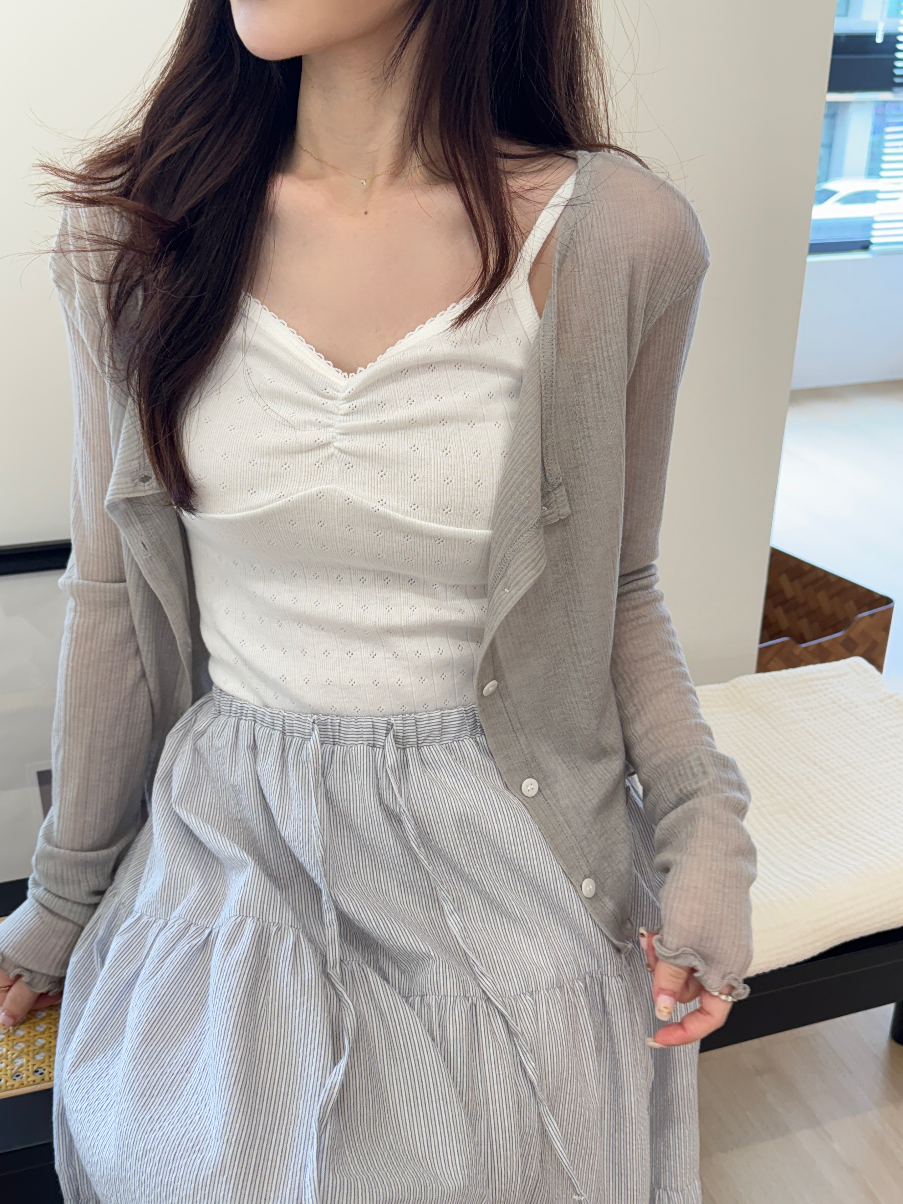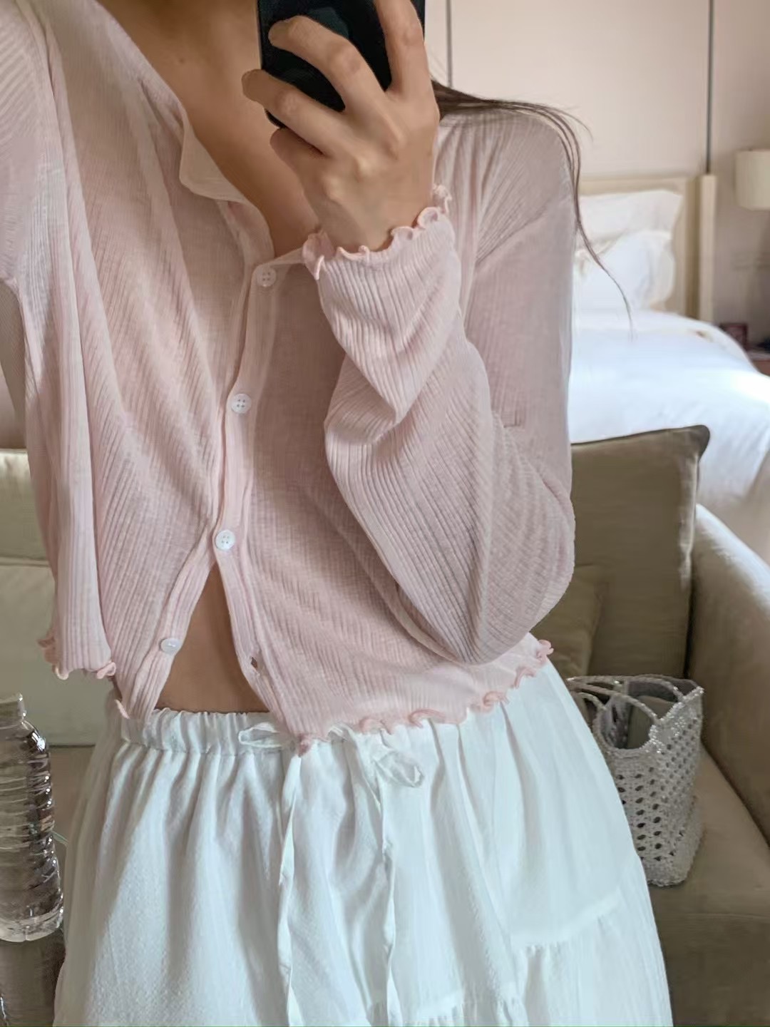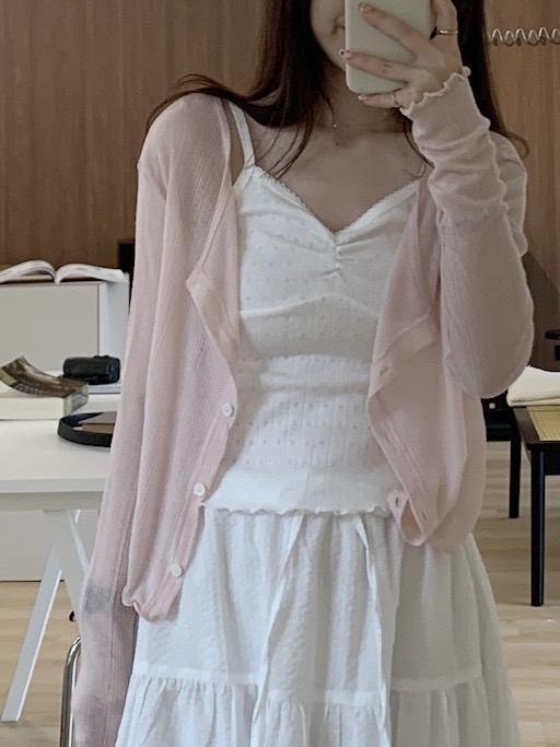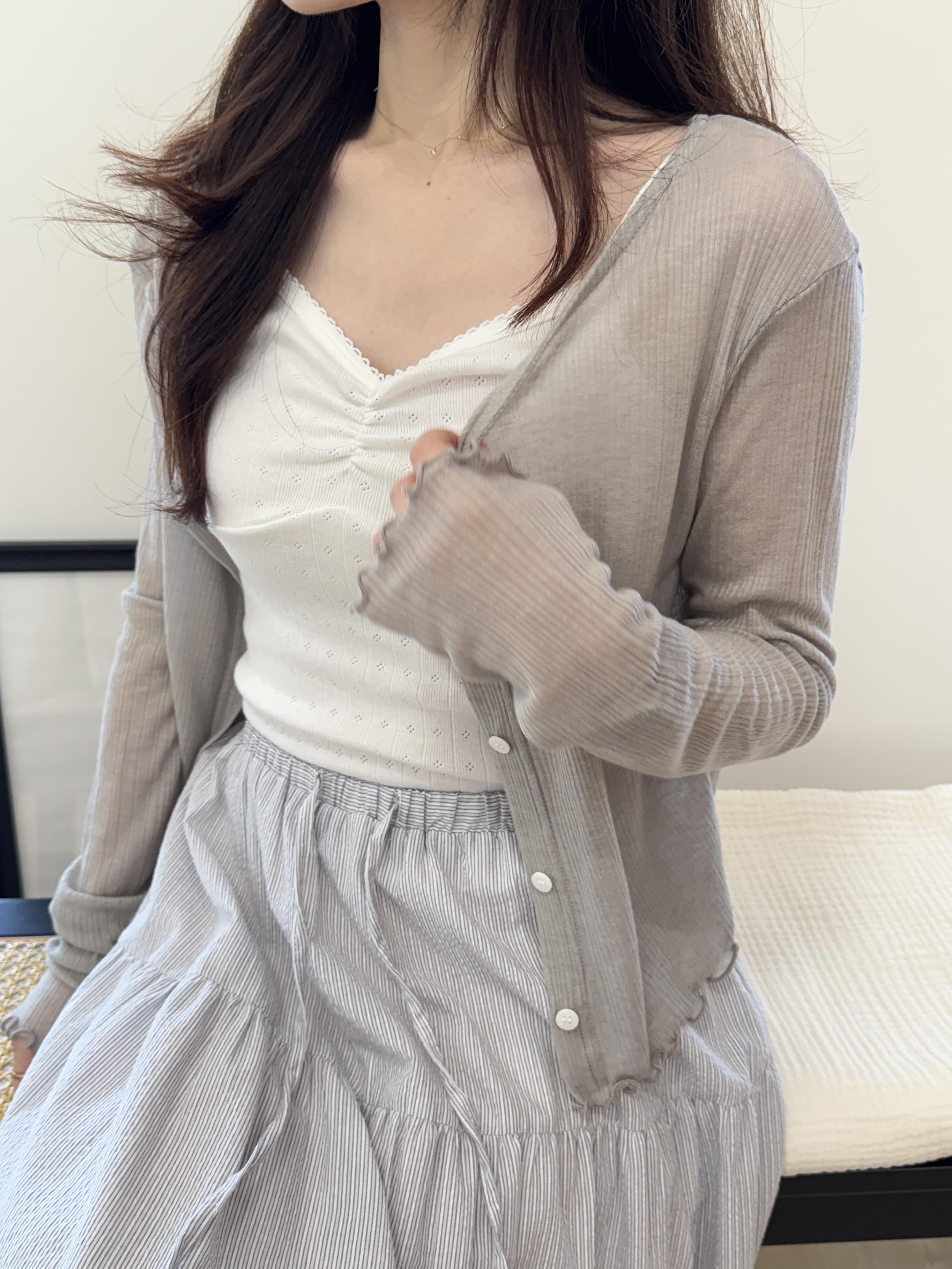 回歸) AS05 柔軟天絲木耳邊紋理小罩衫 2色