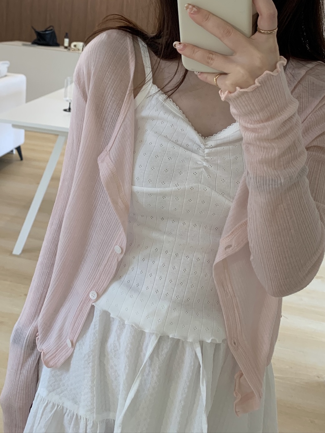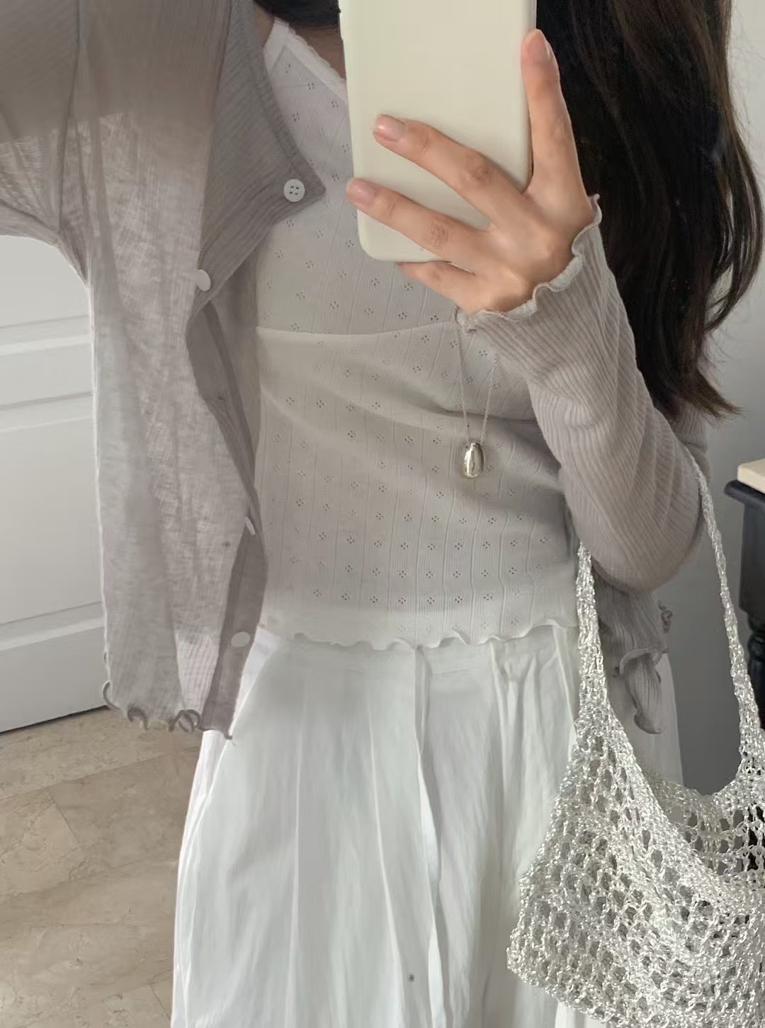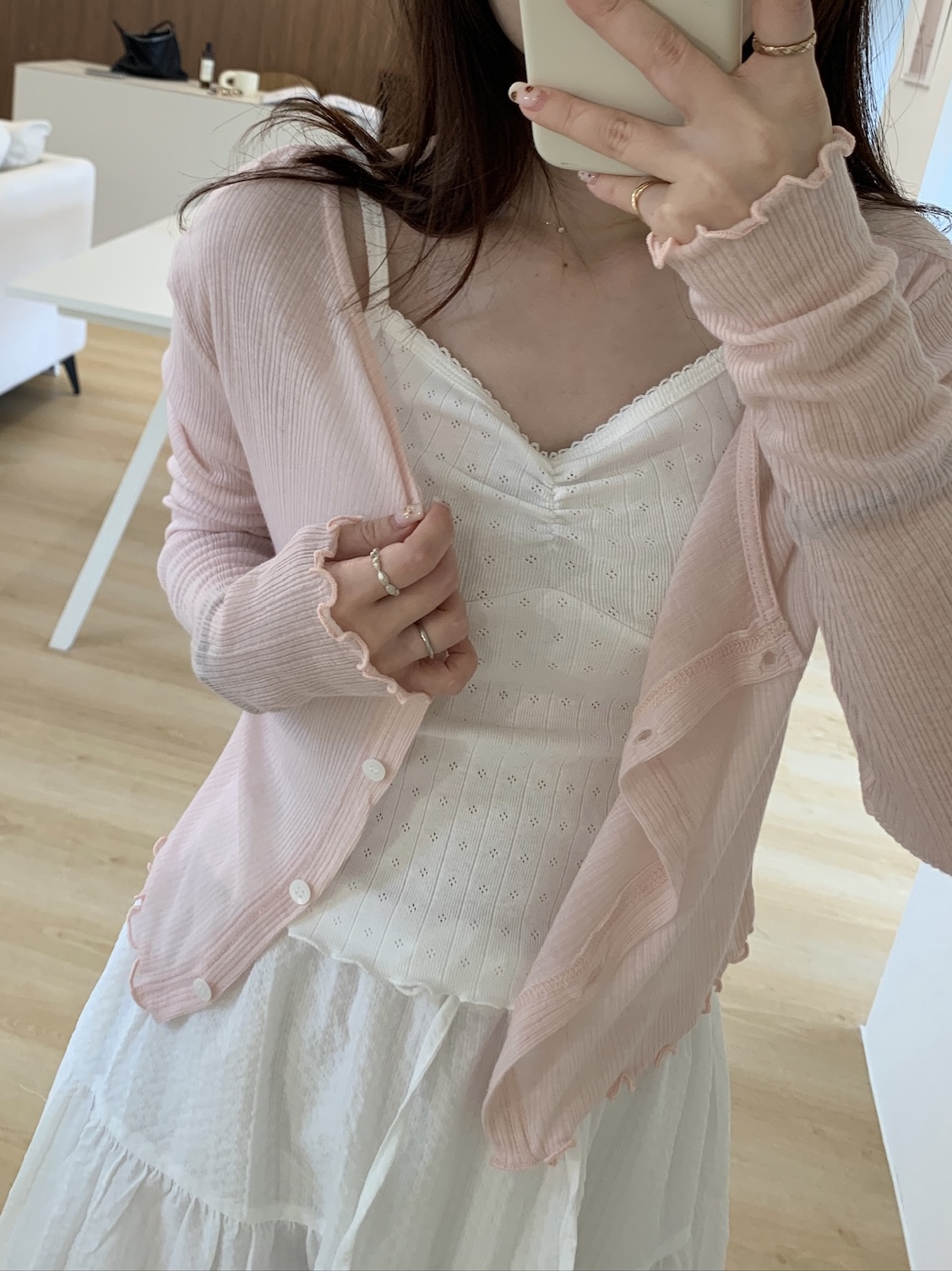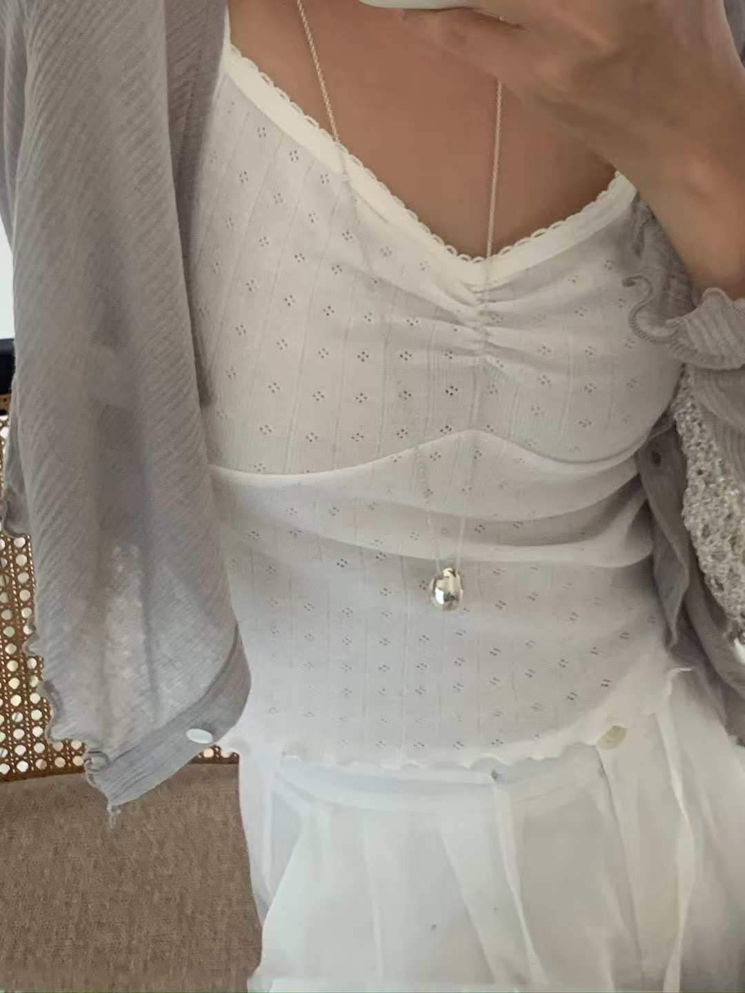 回歸) AS05 柔軟天絲木耳邊紋理小罩衫 2色
