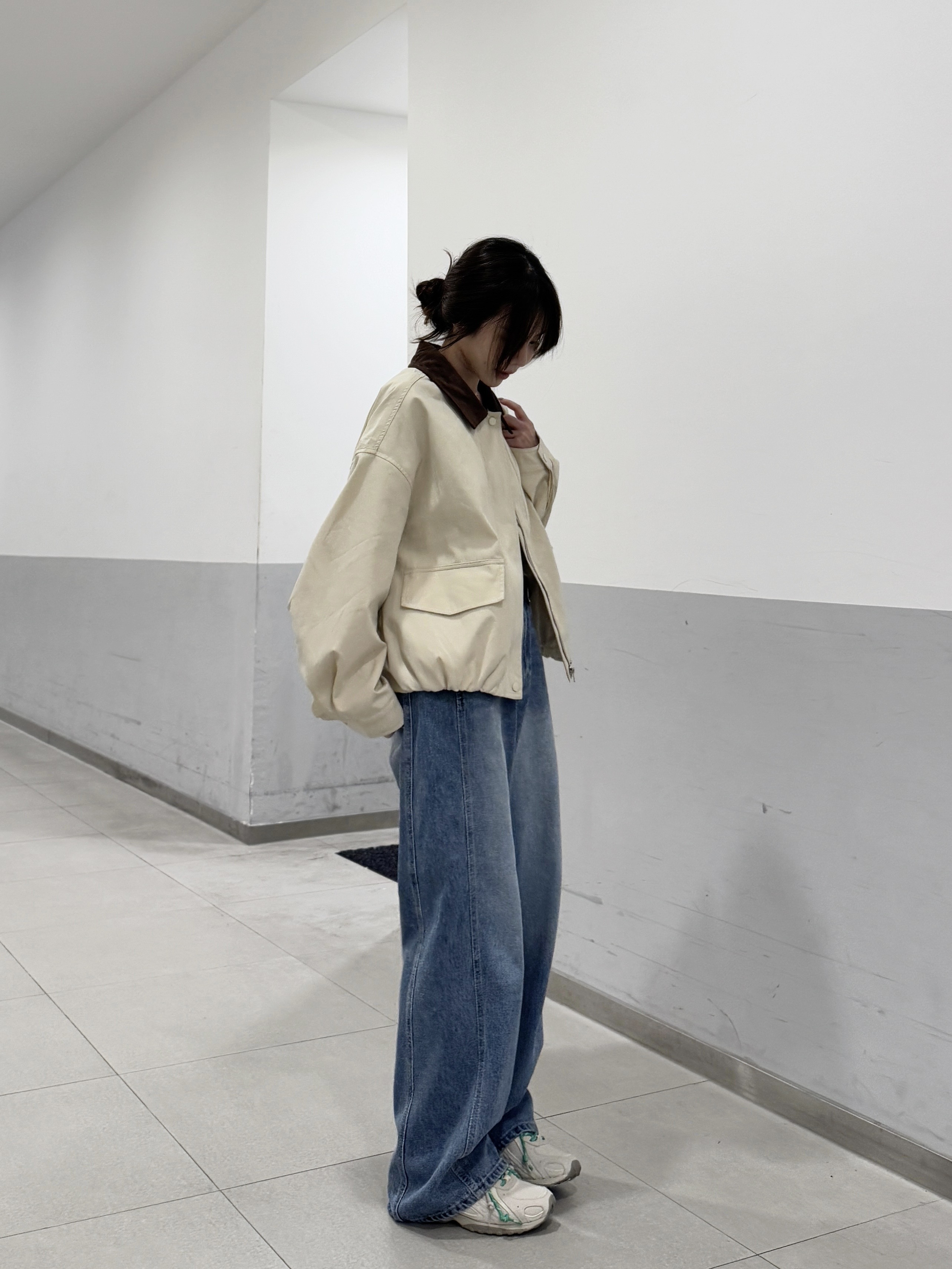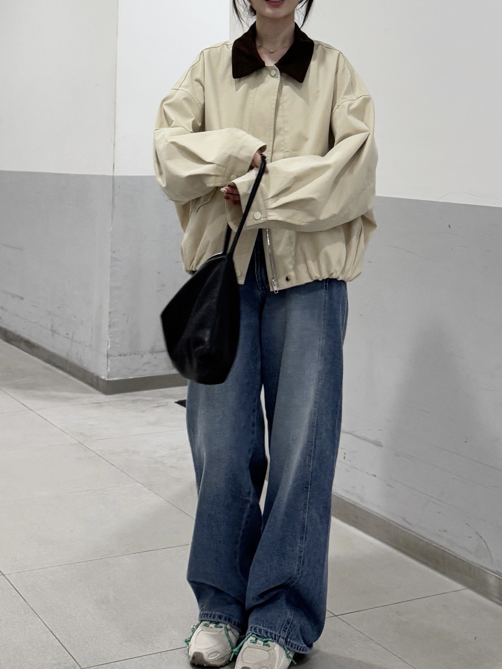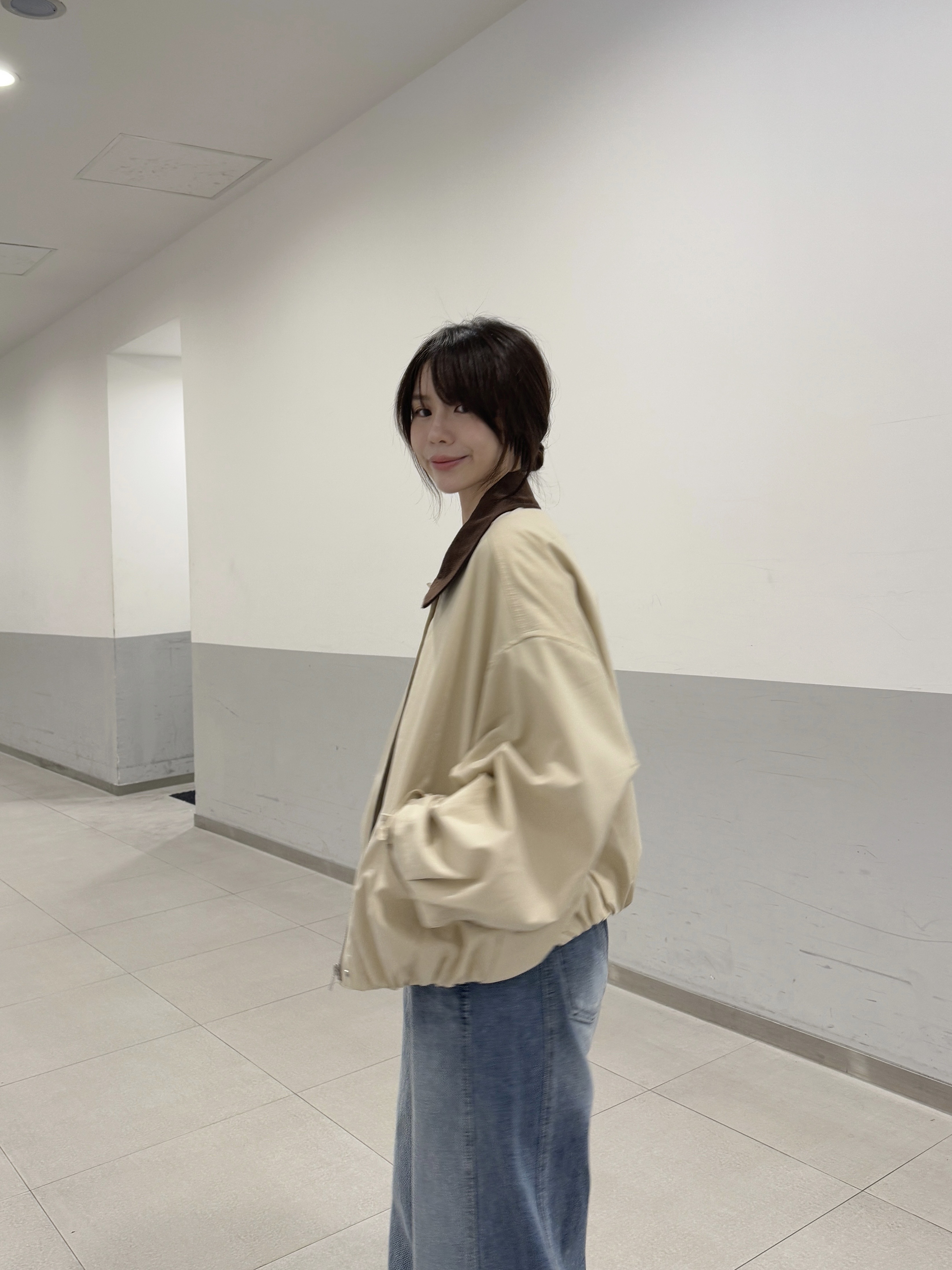 現貨 AU14 拼接撞色領卡其外套 1色