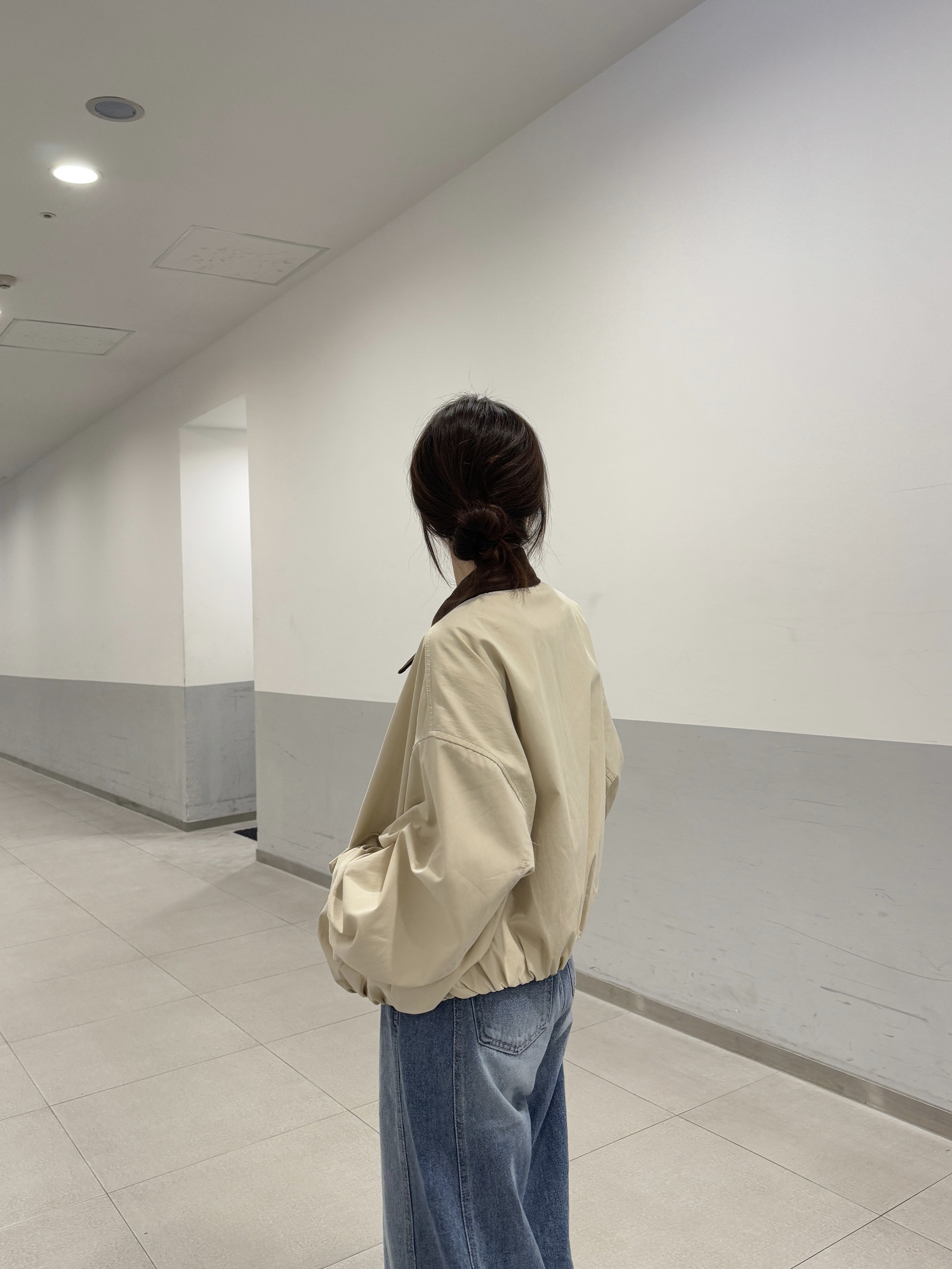 領子撞色拼接燈心絨布料