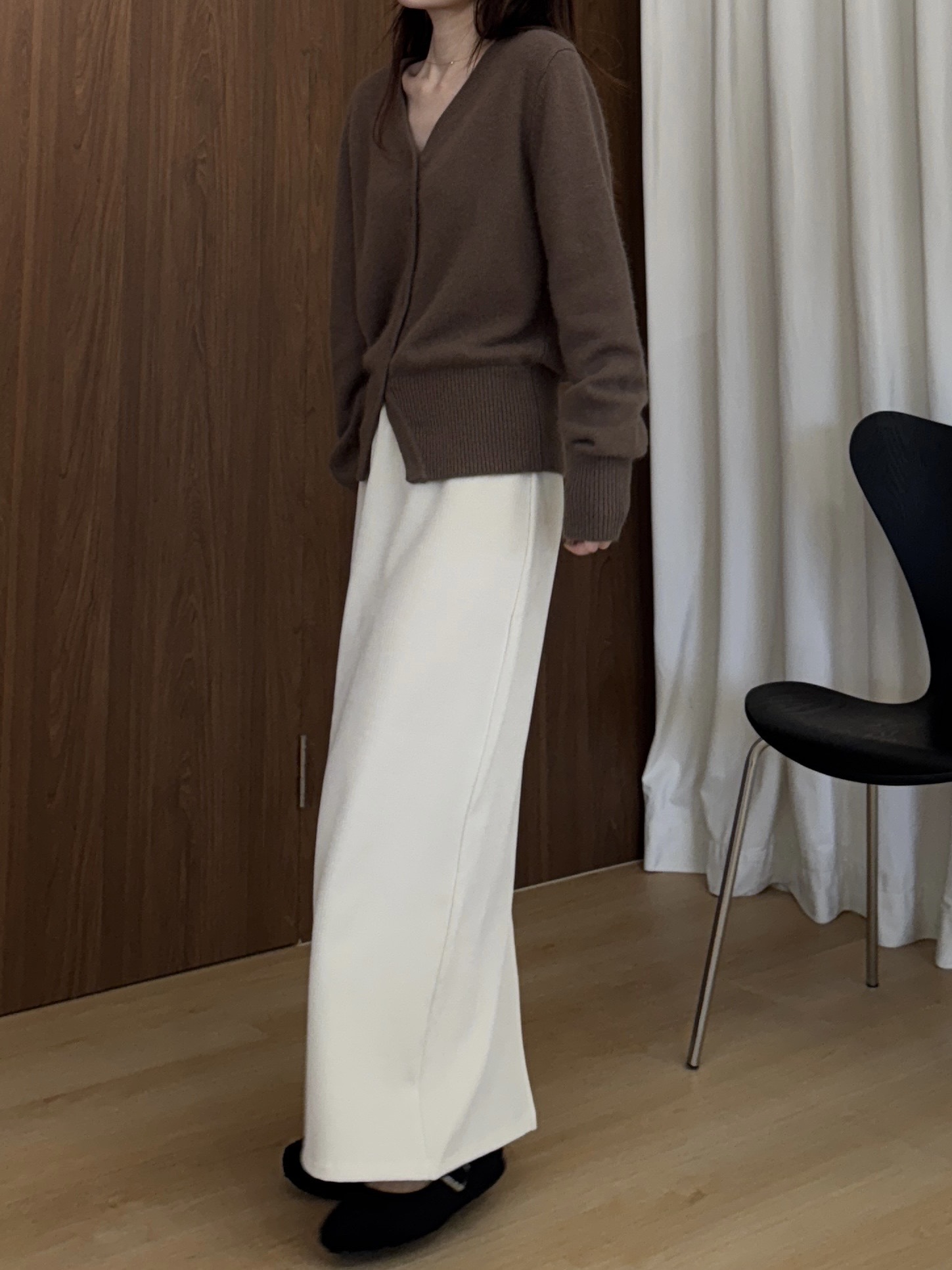 現貨 AZ08 輕磨毛紋理感直筒後開岔長裙 1色