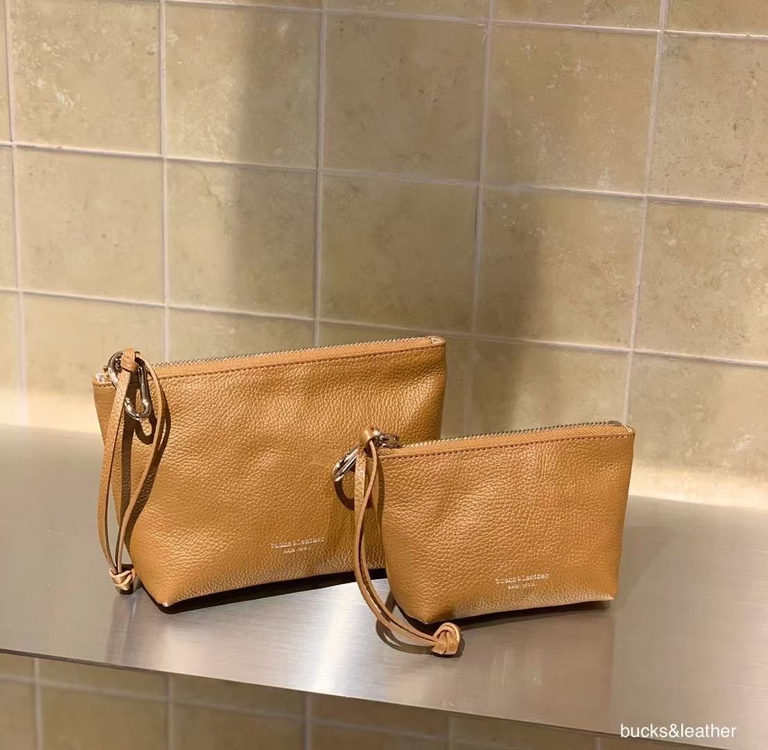 B28 Bucks&Leather 牛皮荔枝紋收納化妝包 大/小款