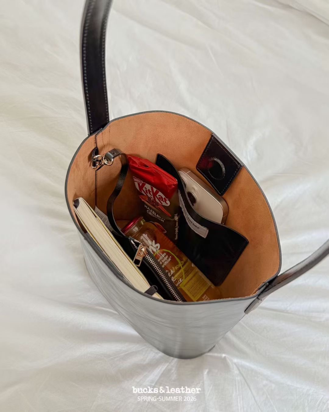 B49 Bucks&Leather 26年新款!牛皮大容量水桶包 (附零錢包)