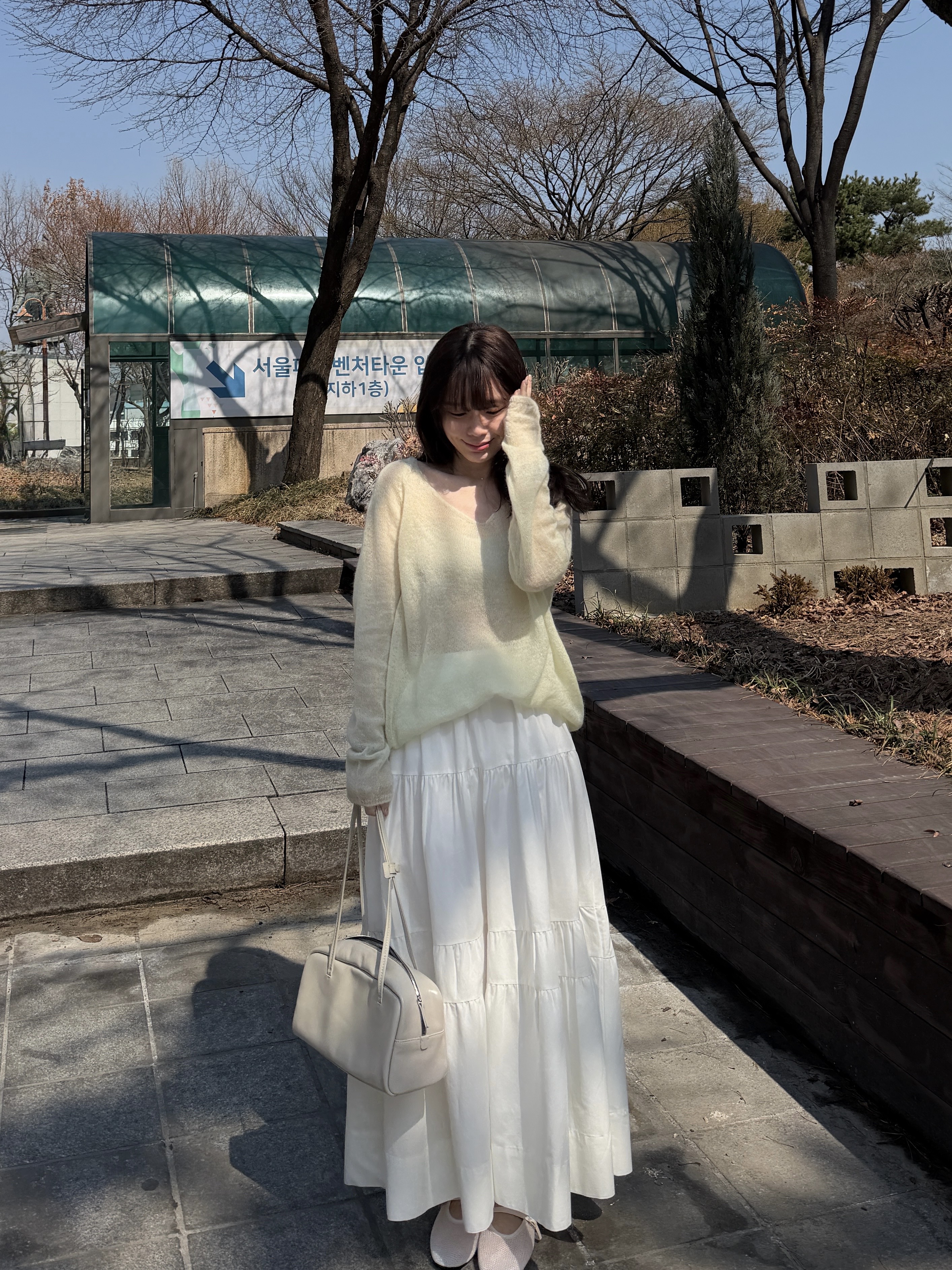 BB12 鬆軟馬海毛微V領透膚上衣 2色