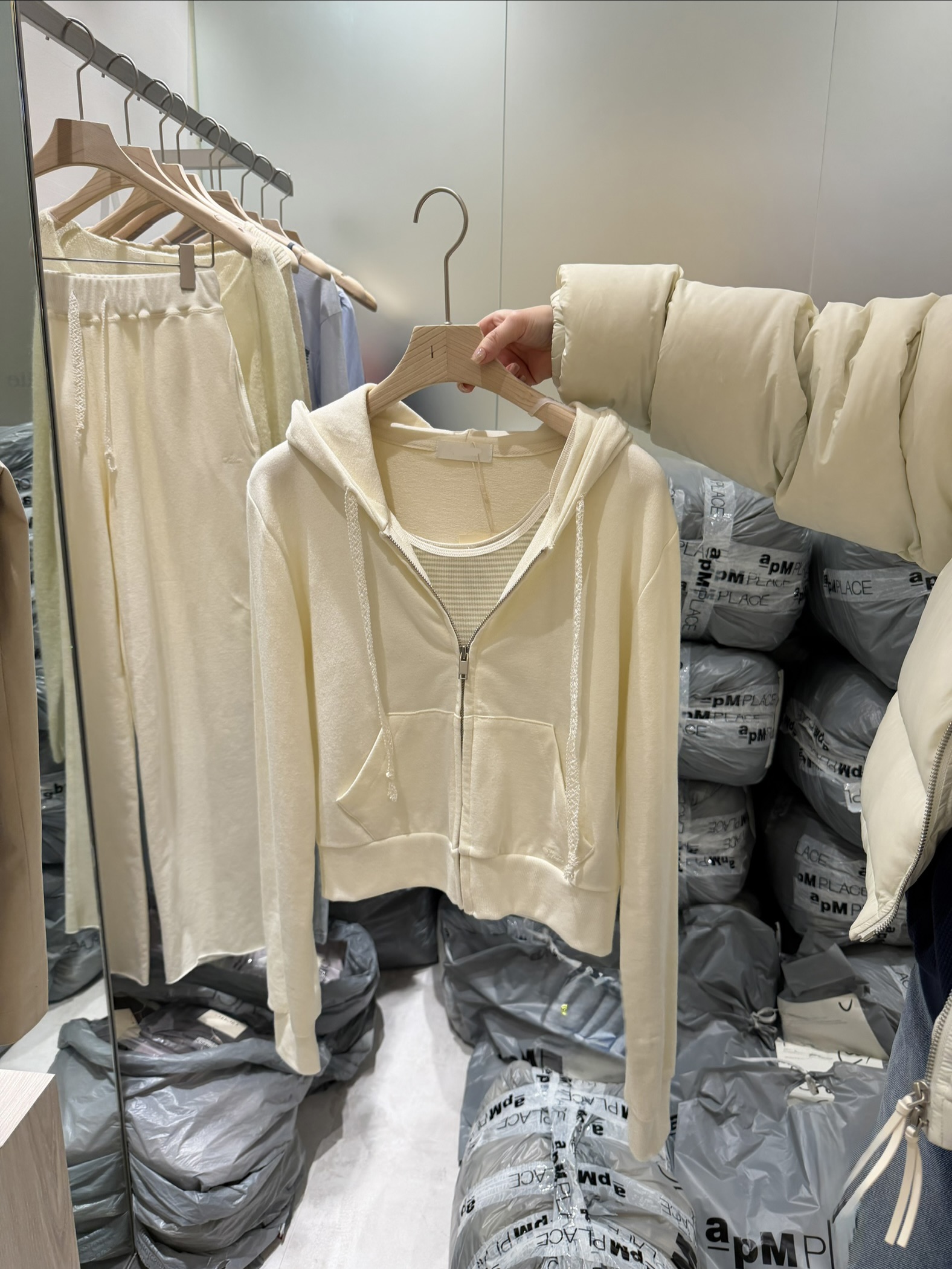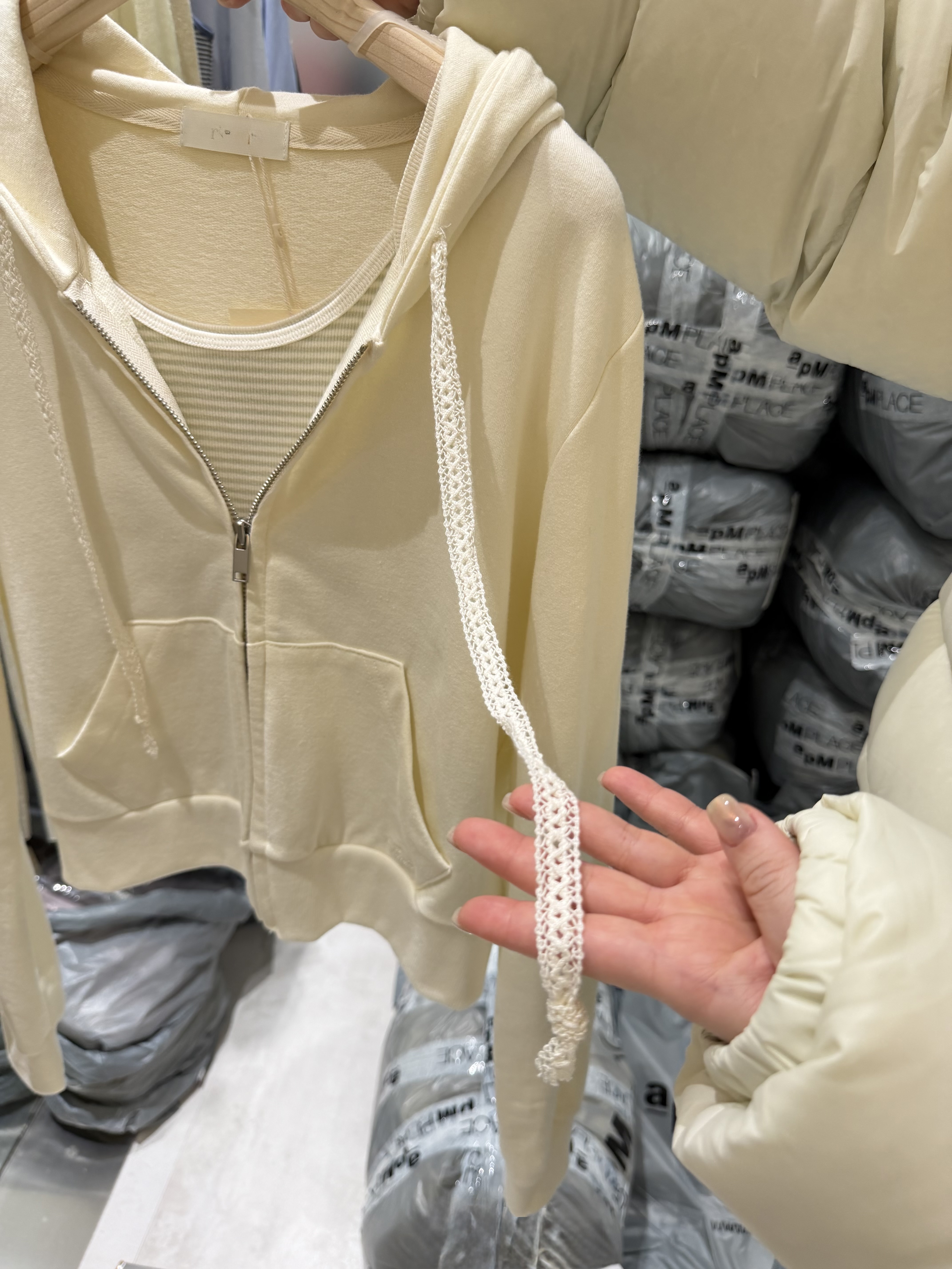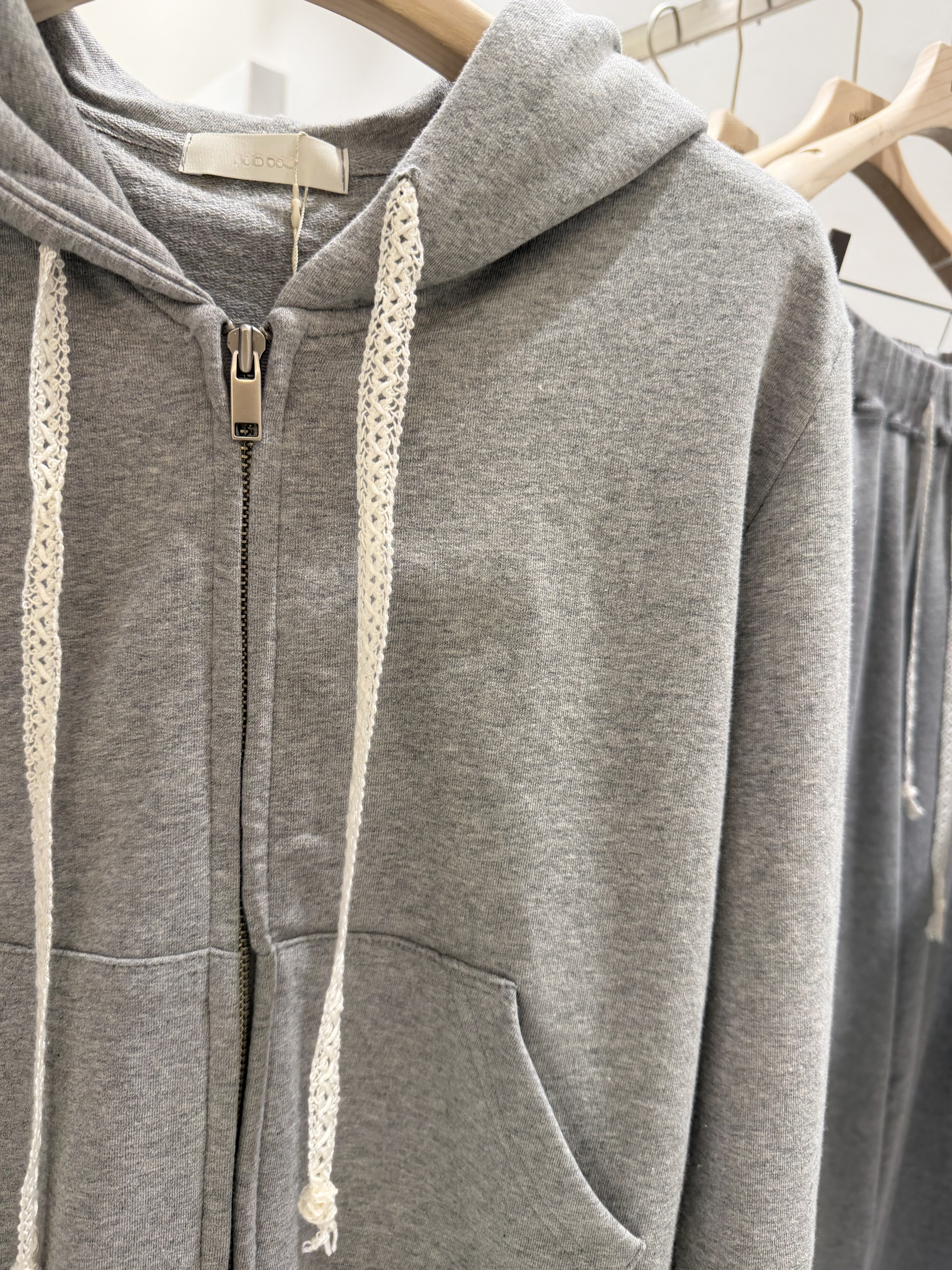 BB11 細節加分小刺繡lace緞帶連帽外套/長褲set (分開賣場)