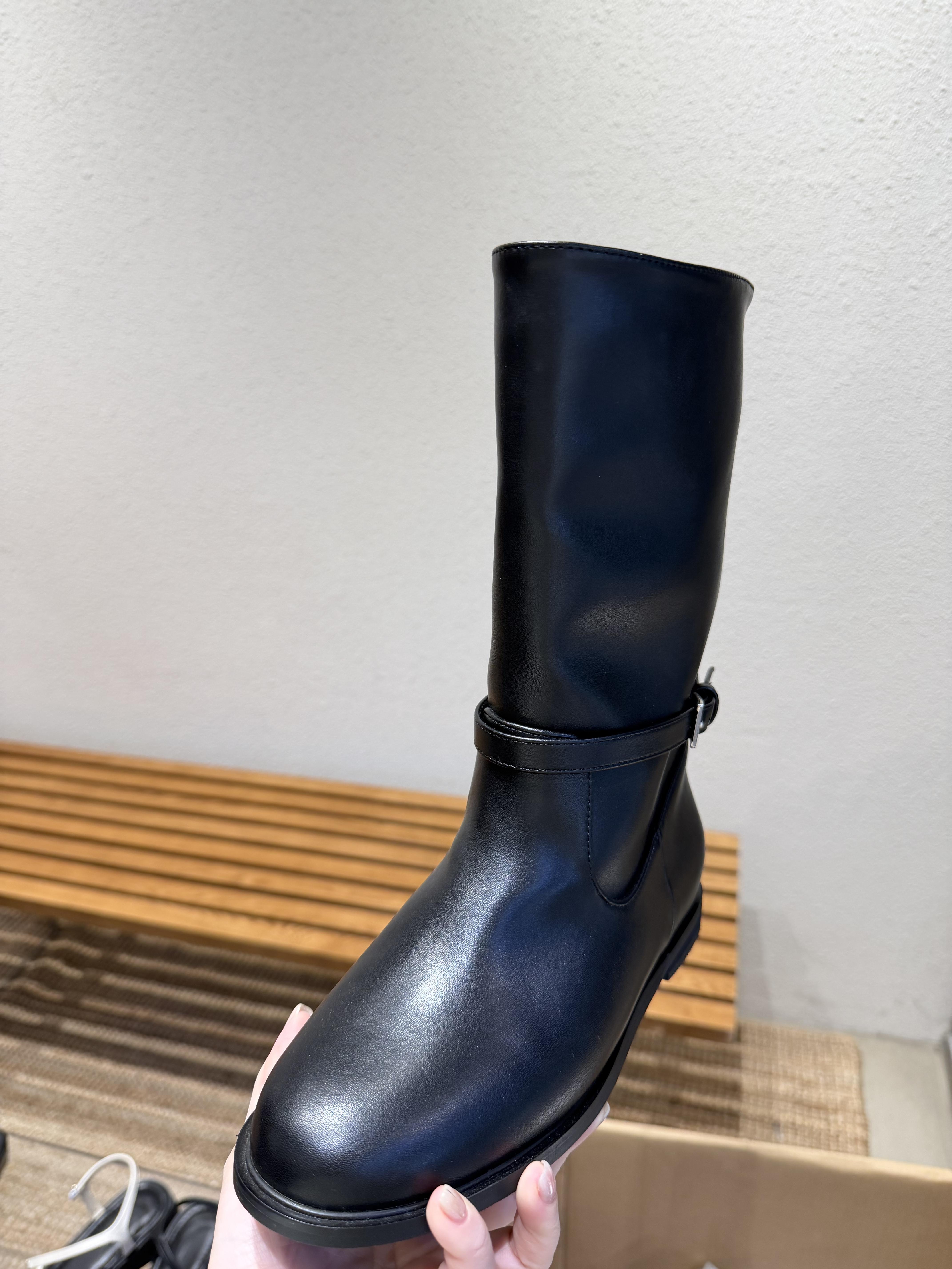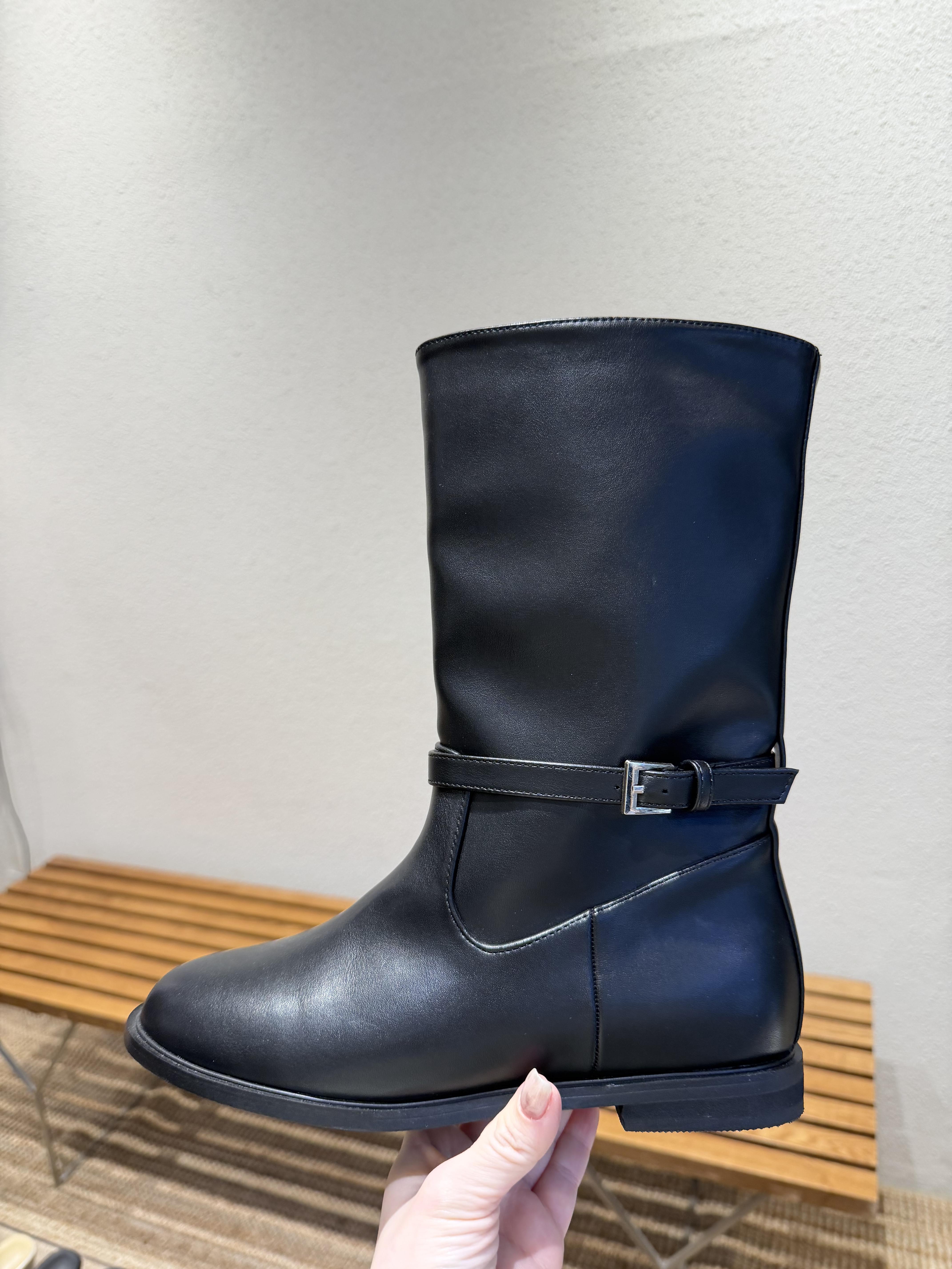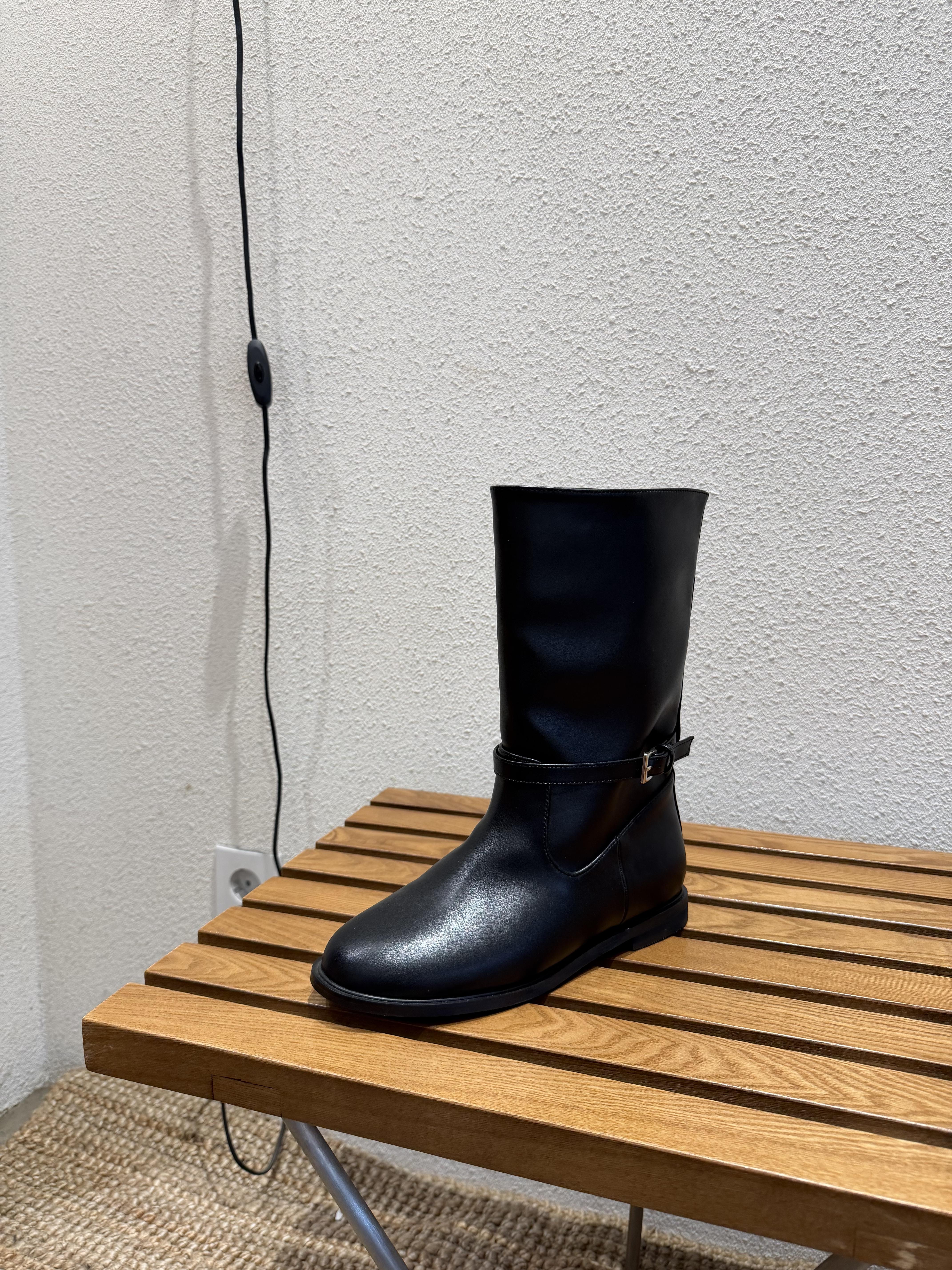 BB16 低跟軟皮革中筒靴 23-255